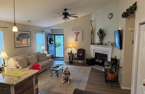1 Story 3 Bedrooms 2 Bathrooms Home in a quite Neighborhood with many nearby restaurants and shops and also a beautiful lake. Your furry friends are more than welcome here, House is not Child Proof but children are allowed..