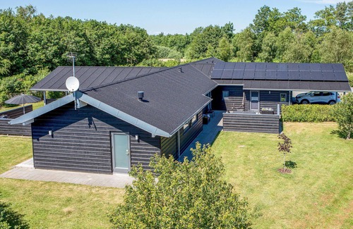 In the cozy seaside resort of Øster Hurup awaits you this fantastic luxury house. This is a vacation home of the very best quality, built according to the latest findings regarding thermal insulation and heating. The geothermal heat pump provides the energy for heating the rooms and the pool water and ensures low energy costs. With the three bathrooms, the spacious living room, the activity room and finally the generous pool area, this house is big enough for several families. Lots of fun is promised by the activity room and and the large pool area. The modern design and the successful architecture make this house very comfortable. Horseback riding, tennis, mini golf and fishing in the Rut & Take is possible.
