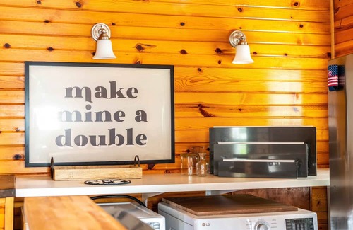 the home’s charming interior is every cabin-lover’s dream, with wood-paneled walls and ceilings embracing you in warmth and comfort The living room provides ample leather sofa and recliner seating for evenings spent streaming all your favorite shows and movies on the smart TV. The eat-in kitchen offers everything you need to create delicious culinary delights in the convenience of home, with full sized appliances and ample countertop space and cabinetry for preparation and storage. Mealtimes are made simple with options for everyone at the table or the counter, each offering the opportunity to dine in good company.