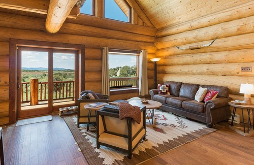 this beautiful cabin features plenty of living space, a wood-burning fireplace for cozy evenings, and an upstairs loft with expansive views of the southern ute mountains and rolling landscape Watch deer roam with your morning coffee from the wrap-around deck, gather for dinner and grilling, or cozy up around the fire pit for stargazing. This cabin offers the peace and privacy of a 10-acre ranch, but is so close to town you won’t miss out of any of Durango’s attractions or restaurants. Experience all that Durango has to offer, then retreat back to your own private desert oasis. Experience the magic of where the southwest meets the mountains at the Zia Vista Cabin.