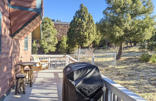 enjoy a mountain-view cookout on your wraparound porch, detailed with a gas grill and charming sturdy rocking chairs The fenced yard is convenient for guests with pets. You're also very likely to see elk and/or wild horses, and guaranteed to be greeted by deer.