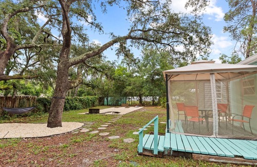 Weeki Wachee cottage that sleeps 2 adults. Bedroom has a king size bed and the couch pulls out and sleeps 2 small kids only. Plenty of space outside to park your boat, trailer, or toys. There is a 10x20 RV pad with 30A hookup available for extra. No dump station. Two kayaks, fish cleaning table, fire pit, horseshoes, cornhole, netted gazebo, smartTV, propane grill, board games, and hammock. Laundry inside. 1 dog (50lbs).