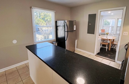 enjoy a meal under the covered patio, rinse off your feet under the outdoor shower after a trip to the beach, play with your dog in the fenced backyard, or take a break from the sun and watch tv in the living room! washer/dryer included (in same room as dining and futon) Charcoal grill. Linens Included. Wi-Fi. No smoking.