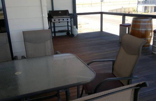 Holiday home at North Shores, North Beach. Fully furnished house (ALL quality bedding, linen, towels, etc provided), with classic/modern interior. Very spacious, ideal for 1-2 families. Enjoy outdoor living at its best, from the large balcony/deck (has wind/ weather protection cafe blinds also), overlooking the sea views, where you will spend endless hours while having a bbq and enjoying the serenity. Plenty of living space indoors aswell, for everyone to enjoy. Beautiful North Beach is also only a 7 minute walk away or 3 minute drive. Unwind and enjoy a great relaxing getaway, with family and friends, anytime of the year.