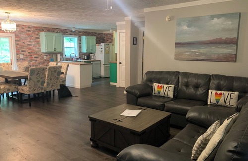 relax with our outside amenities including 4-6 person hot tub, fire pit, basketball hoop, expansive deck over looking beautiful large yard, and even a gaga-ball pit Inside layout includes 5-6 bedrooms with 11 total beds and 2 full baths, with first floor laundry.