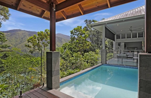 award-winning and architecturally designed to suit life in the tropics, the house makes the most of cool breezes and maximises the views of the surrounding rainforest, you will always feel connected with nature and the outdoors Looking out from the lounge is an expansive entertaining deck, private pool, all with stunning views of the surrounding valley.