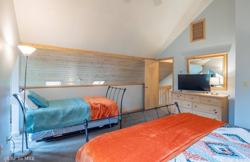 with space for up to 10 guests, everyone can find their corner of comfort The lower level provides quiet bedrooms and convenient laundry. Upstairs, a king loft suite with a trundle bed makes a fun hideaway for families. Each floor has its own full bath, ensuring plenty of room for everyone.