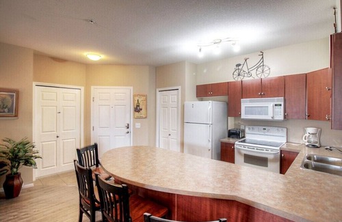 the suite features a well-stocked kitchen with breakfast bar and everything you will need to feel totally at home to start relaxing from the moment you arrive Grocery shopping is just 10 minutes away at Nesters local supermarket. The suite also features in suite laundry with full size washer & dryer, towels, pool towels and a BBQ on the patio. There is a reserved single car space in the fully secure underground parkade. Book your vacation early in order to avoid disappointment!.