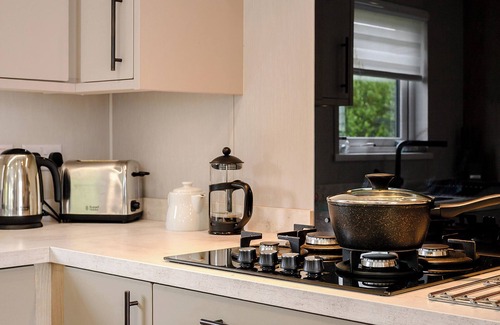 Brand new to 2023. Outstanding, spacious lodge with one double and two twin. Shower. Open plan lounge/diner with kitchen area. Verandah with garden furniture and outdoor hot tub. No pets.