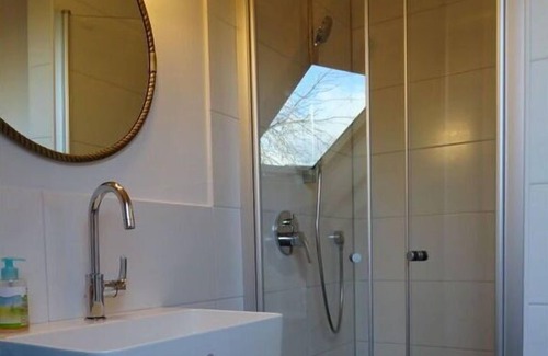 bright and spacious, new, new apartment on the attic (2nd floor) with a spacious balcony Up to four guests can find space here on approx. 65 m². The kitchenette in the residential area is completely equipped with dishwasher, induction bed, oven, fridge, freezer, coffee machine and the usual (cooking) dishes.