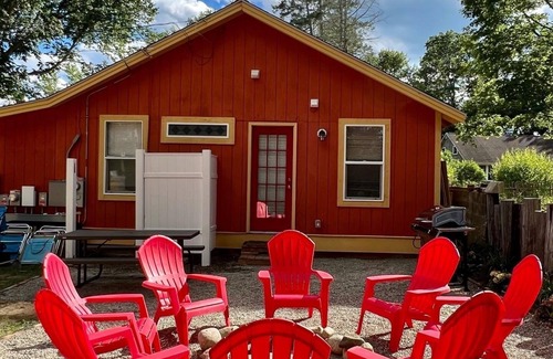 escape to the charming moana bungalow, one of 7 themed retreats at the calico seahorse! this spacious 3-bedroom sleeps 7, with 2 queen beds, a queen sleeper sofa in the living room, and a twin futon just a 5-minute walk from the sun-kissed sands of white horse beach, your seaside adventure awaits!