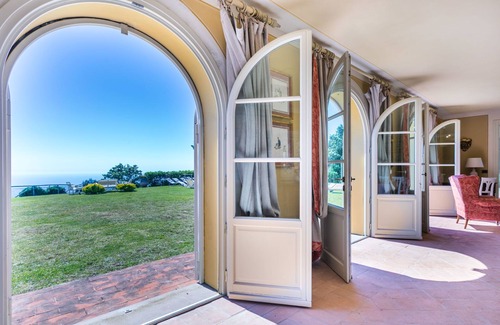 9-room villa 370 m2 on 2 levels Spacious and bright, beautiful and tasteful furnishings: living/dining room. Open large living/dining room with digital TV. Exit to the garden. 3 double bedrooms, each room with shower/bidet/WC. Exit to the garden. 1 room with 2 beds. Large kitchen (oven, dishwasher, Gas stove, 5 gas rings, toaster, kettle, electric coffee machine). Exit to the garden. Shower/bidet/WC. Electric heating, gas heating, air-conditioning (extra). Upper floor: 1 double bedroom with shower/bidet/WC. 2 double bedrooms. Bath/bidet/WC. Patio roofed. Terrace furniture, barbecue, deck chairs (12), conservatory. Marvellous panoramic view of the sea and the countryside. Facilities: washing machine, children's high chair, baby cot for up to 2 year olds, hair dryer. Internet (WiFi, free). Please note: one double bedroom is outside the apartment. Maximum 2 pets/ dogs allowed. Large main house with 6 bedrooms and 6 showers/WC. Next door is the annex with living-dining room on the ground floor and double bedroom with shower/WC on the upper floor. When there are less than the maximum number of guests staying at the property, not all of the housing units will be available for use. it050019c28zbplsay