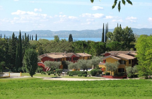 Very large resort "Poiano Resort Appartamenti", 2 storeys. 160 apartments in the residence. Above Garda, on the outskirts, 3 km from the centre of Garda, in an elevated position on top of a hill, 3 km from the lake. For shared use: property 60 ha, terraced garden with lawn and trees, swimming pool (50 x 25 m, depth 140 cm, seasonal availability: 15.Mar. - 15.Nov.). WC in the pool area, children's pool, outdoor shower, tennis (4 x clay court), floodlit (extra), table tennis, volleyball court, beach volleyball, children's playground. In the complex: reception, restaurant, bar, breakfast room, WiFi, fitness room, spa area for shared use (extra), shopping facilities, central heating system, air conditioning, washing machine (extra), tumble dryer (extra), bicycle rental. Towel change weekly (suppl. charge extra). Room cleaning on request (extra). Breakfast and half board possible on request (extra). Parking on the premises. E-charging station. Bus stop "Free Shuttle Bus Poiano - Garda" 100 m, pebble beach 3 km. Golf course (2 hole) 50 m. Nearby attractions: Golf Club Ca' degli Ulivi (18 holes) 4 km, Peschiera del Garda 17 km, Verona 38 km. Please note: entertainment in the season. Suitable for families, suitable for seniors baby equipment on request (extra), in the season. Access to the Spa for adults only.