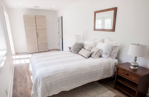 Sweet retreat perfectly located for exploring Columbia County, the Berkshires, or simply lazing on the lawn with lemonade and a good book. Completely renovated in 2019, the cottage has an open layout kitchen, living room and dining area. There are 2 bedrooms, including a spacious master with French Doors leading out to the yard. The house is set in a sunny meadow surrounded by woods with views of the Berkshire mountains. Walk down a grassy path and you’ll wind up at a bass filled pond complete with an ancient dock. We’re told it’s swimmable, though to be honest, none of us have ventured in yet. For hiking, there’s a spectacular Conservation area a mile down the road.