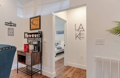 Relax with family and friends at this peaceful place to stay. Welcome to our 3BR 2BA, fully equipped lake house with an amazing outdoor entertainment space. Sip your coffee from the front porch while catching the sunrise. Enjoy dinner with your friends at the large outdoor table or relax with some cocktails and good conversation around the fire table, all while enjoying sunset on the covered back patio with a view of the lake. There is a designated fire pit area just down the back porch steps, perfect for cooler evenings- you can even watch your favorite sports teams on the 65in TV, while you enjoy a cozy fire! The inside is just as entertainment friendly, with an open concept living, kitchen, and dining area. The kitchen is stocked with essentials needed to help create your delicious meals, that can be served at our large dining table, while engaging in conversation with everyone in the home. We also have a high chair for the littles, located in the laundry room. We are equipped to sleep 11 people comfortably (or 12 if you like to snuggle) with 2 king beds, 2 bunk beds- one with a trundle, and a queen air mattress set up that is located in the 2nd guest room closet. There is a pack and play available for use, located in the master closet.