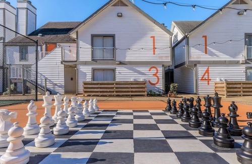 This property offers a variety of family friendly amenities. There is a private pool with sun deck, heated spa, multiple grilling stations, bark park, corn hole, sand volleyball, life size outdoor chess board game, free private parking, free Wifi, outdoor play equipment, state of the art fitness center, study areas and rooms!.