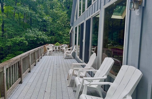 step out onto the expansive wrap-around deck or relax in the brand-new screened porch — ideal spots for enjoying morning coffee, outdoor dining, or stargazing at night Nestled in a wooded setting, the property offers peaceful privacy and a sense of seclusion, with only one distant neighbor in sight.