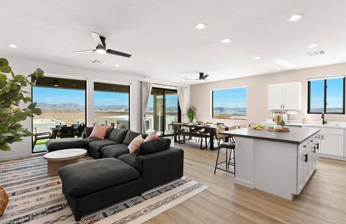 Adventure awaits at Powell’s Edge Retreat! Discover the perfect Lake Powell getaway in this brand new, family-friendly home that sleeps up to 20 people, tucked in a quiet neighborhood just outside of town. Stargaze by the firepit, relax in the hot tub, play in the game room, or rejuvenate in the wellness/fitness area. Enjoy outdoor dining, a grill, fire pit, lawn games, and incredible lake views. with ample boat/toy parking and great location—just 13 mins to wahweap marina and 9 mins to lone rock beach—lakeview oasis at powell is your ideal base for boating, hiking, and off-road adventures!