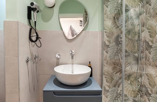 Discover this cozy apartment, entirely at your disposal, renovated in chic floral style, close to the Metro and Central Station. Daytime corner with kitchen, washer-dryer, memory foam double bed, and smart TV, elegant bathroom with shower enclosure, welcome kit. Ironing facilities available. Perfect for romantic getaways, business trips, or relaxation.