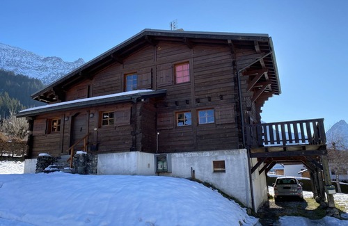 Family and warm atmosphere, with its decoration, the ubiquitous wood, the carpet upstairs, its fireplace in the living room, on one level on a magnificent terrace facing south, view of the glaciers and the valley. Bedding for nomial for 8 adults and 4 children.