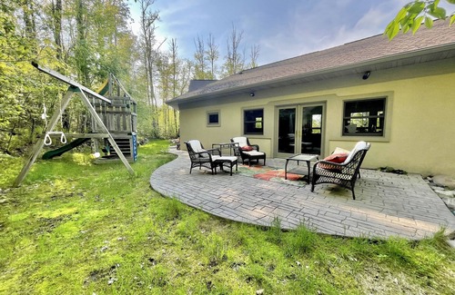 Hillcrest is a private, spacious home in a quiet, safe neighborhood on a cul-de-sac, nestled high on a hill surrounded by wooded privacy. The vaulted ceilings, towering windows, hardwood floors, and massive granite kitchen island will make this space ideal for a large group, such as a corporate or family retreat, yet even a single family. You'll love the close proximity to the areas premier amenities including Tioga Beach on Pokegama Lake with a nice boat launch, pavilion picnic area and playground (4mn walk on a private trail, steps from the driveway). Tioga Mountain Bike Trailhead is also a 4mn bike ride from the driveway. There are 4 golf courses within a 20-minute drive. Grand Rapids' myriad amenities, and of course, over 1,000 lakes in the county make this a spectacular place to explore with your family and friends.