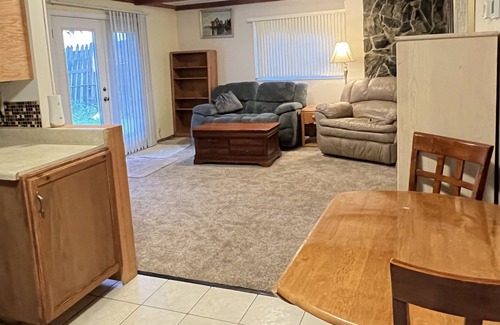 Mother in law apartment with shared washer dryer and a great backyard. Queen bed w linens and all kitchenware you need to enjoy the winter. Utilities included no smoking. Private or shared entrance. New mattress. Seeking quiet clean tenant with regular rent history. Background and proof of employment. Midtown location near airport. Shared use of hot tub with compliance of quiet hours respected. Off street parking..