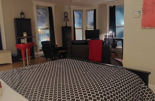 Large, modern oceanfront 2nd-floor Studio Flat in well-known heritage building! This one-of-a-kind flat is in the center of the Saint John uptown nightlife and restaurant district. Perfect for guests who want to be in the middle of the action. Enjoy beautiful views of Saint John harbour from the heritage floor-to-ceiling windows and private balcony! You will love the high-quality bedding. Search the Thomas Furlong Building to understand more about the history of this Saint John Landmark!.