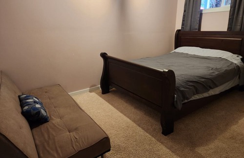 be as quite or as loud as you want as the backyard basement is completely private Great for a party or large family getaway as can sleep up to 10 people!.