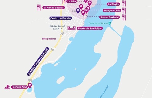 bacalar is a small and magic village, full of flavors and mexican colors It is easily accessible by walking or biking and you’ll find all kind of local shops and restaurants to fit any taste.