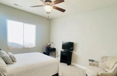 Inviting lower-level retreat with 3 bedrooms, two bathrooms and private access to luxurious amenities including a soothing hot tub, 4k-screen theater, refreshing pool with a stunning rock water-fall, serene patio, and cozy gas fire pit - oh and I almost forgot, a ping-pong table! -perfect for relaxation and entertainment after a day of exploring all of what St. George has to offer..
