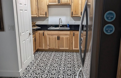 inside the casita -this charming space features a comfortable full-sized bed for restful nights, a fully equipped kitchen with everything you need for home-cooked meals, and fast wi-fi so you can stream or stay connected with ease With an in-unit washer and dryer, you’ll enjoy all the conveniences of home during your stay. The living area is cozy and inviting, perfect for unwinding after a day of exploring the surrounding area.