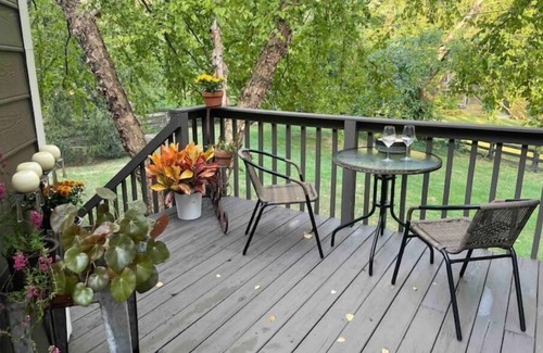 Welcome to my warm, cozy home in a tucked away older neighborhood lined with mature trees displaying beautiful color foliage in the fall, and fragrant trees in the spring - literally 3 minutes from Keeneland and the Airport. The guest wing is private and separated from the rest of my home. In the upper bedroom/greatroom you'll feel like you're staying in a treehouse, and you'll even have your own deck area to enjoy the spray of color and a meandering creek. A literal sanctuary..