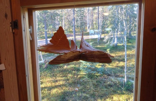 from the äkäsjärvi you have views to nearest fjells and in the night time you have the best opportunities to see northern lights! your own space is granted as the nearest neighbors are more than 100 m away and the lake has only very few cabins The cabin is surrounded with natural forest, where you find the berries and mushrooms to collect in the autumn time. You can use the rowing boat to explore the lake and fishing is also possible. In the winter time also snow shoes are provided to getting around in the deep snow that can exceed over 1 meter snow cover.