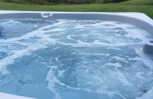 Modern Elk Mountain Estate Chalet sleeps 18-20 comfortably. 2 hours or so from NYC, NJ and Philadelphia. Come experience Summer fun and Amazing Fall Foliage!!! 10 min from Elk Mountain Ski Resort. Close to Rail Trail and State Park. 6 bedrooms and 4 1/2 baths. Our Estate Chalet features beautiful natural views and overlooks a large nature pond. Perfect for getting away and unwinding. Our Chalet is a high efficiency home with radiant heated floors for warmth and 5 zones cooling system for Summer comfort. Gourmet kitchen and great room with floor to ceiling windows and real stone fireplace. Hot tub on rear patio overlooks nature and night skies for star gazing with a glass of wine and loved ones. WIFI provided. Many nature trails on site and only 3 miles from Clifford Community Park for Pickle Ball, mile long walking/biking paths, baseball, tennis, basketball and awesome well maintained kids' playground, as well as a short drive to entrance to D and H Rail Trail for bike riding and hiking for all ages. Located just 8 minutes from Elk Mountain Ski Resort for best skiing on East Coast! Creek for fishing, swimming and tubing. Chalet is part of a larger estate property featuring a main Manor house that sleeps up to 25 and a separate listing. Both homes are completely private from each other and may be rented separately or together for larger groups such as family reunions, retreats, weddings and special events. 5 wonderful golf courses within a short ride. Seasonal polo on grounds. Fishing on grounds. Stocked creek. Home is very private, surrounded by trees and nature located down in a glen by a pond and creek. Wild berries grow everywhere for picking. All year-round fun!!! Lakes, state parks, rafting, ski slopes, casino, aquarium, Happy Trails horseback riding, animal parks, water parks, etc nearby. Chalet has 6 bedrooms and 4 1/2 baths, with private queen master suite. Chalet has a game room with couches and flat screen TV as well as Ping Pong table. This level opens to expansive side yard with horseshoe pit and seating. Large yard areas all around the property for outside games and group activities. Creekside picnic area. Gas firepit and wood firepit on rear deck and patio. Large grill on rear deck with seating, which overlooks the rear lawn, pond and backside of Elk Mountain. Linens and bath towels provided. Fully stocked kitchen. Hot tub. WIFI. Landline phone provided as a courtesy. Grocery store, pizza, sandwiches, wine and beer shop and Dollar Store for necessities all within 3-5 miles of our home. Several local catering options for meal delivery upon request. Perfect for family gatherings, birthday celebrations, reunions, retreats, ski season, romantic or private getaways..
