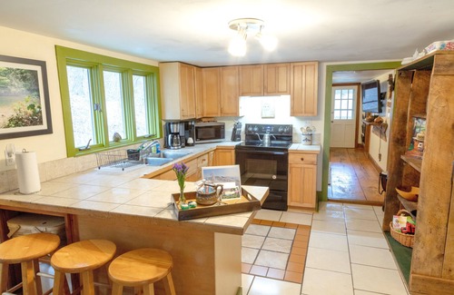 enjoy time outdoors by the relaxing near the babbling brook, sunbathing near the pond, roasting marshmallows by the fire pit or meandering the trails along the property The plant life is extremely diverse and you will most likely see deer and other woodland creatures.