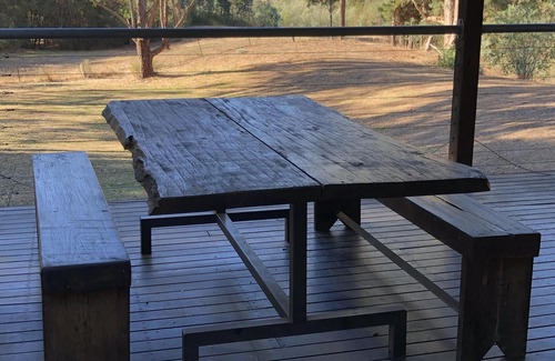 there is a bbq & drinks fridge available on the large covered deck offering beautiful private views of taylor bay for relaxing family & alfresco dining we recommend the thornton butcher, which is only 12 mins away, for some delicious cuts of meat and incredible beef jerky!