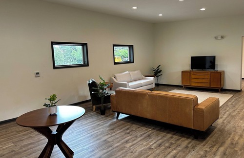 Escape to the perfect weekend getaway nestled near the picturesque Pocono Mountains in PA. Situated just away from I-80 and I- 81 in the Conyngham, PA region, our chanting villa provides the perfect private sanctuary for up to 15 guests. Each room features en suites for added comfort, and the private courtyard boasts a cozy firepit, perfect for evening gatherings. With 70 acres of land at your fingertips, you can lounge in the exclusivity for the weekend.