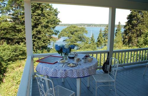 our family house, 'treetops' sits on a hill overlooking the ocean and harpswell sound which is part of casco bay With a large wrap-around porch, it is the perfect place to enjoy cocktails on a summer evening and watch the sun set over the Sound in front of you and Mount Washington, NH in the distance. this is the place to create unforgettable family memories!