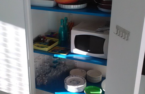 a kitchen fully equipped to nine with a large refrigerator (191l) / freezer (61l) 2 door, an oven pyrolysis - hot air (60l), ceramic hob 3 burners, dishwasher 9 place, microwave 700watts (20l)