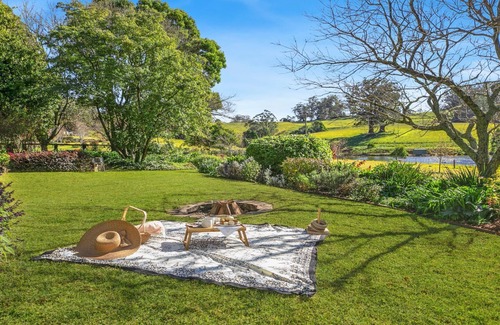 this picturesque setting features beautifully landscaped gardens with multiple outdoor seating and entertaining areas Situated in a private location for enjoyment of peace and quiet. A wood fired pizza oven and BBQ make for the perfect alfresco dining.