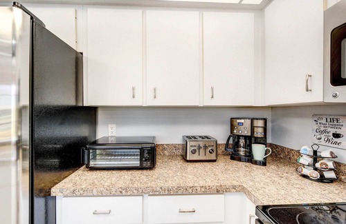 kitchen: dishwasher, refrigerator, stove/oven, microwave, drip/pod coffee maker, toaster, toaster oven, blender, cooking basics, spices, dishware & flatware, trash bags & paper towels