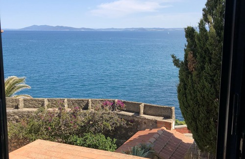 the garden ends in a sun terrace with an amazing view overlooking the fishing village of porto santo stefano and wonderful for enjoying the sunset From there it is accessed via a staircase on the rocks, ideal for diving and fishing, not suitable for young children.