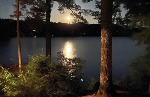 Get an early start to your morning with coffee in your boat as you see the sun rise and the loons swim by. Float around on your floatie with very calm water. Kayaks and paddle boards can be rented. Play horse shoes with your group as you do your grilling. Beautiful screened in porch to enjoy. Air Conditioning is a plus. Enjoy your stay in a smoke free and pet free atmosphere.