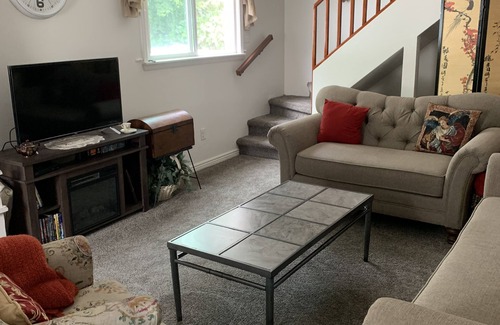 Newly updated with new queen mattress (not an airmattress) in second bedroom and new twin bed in children's bedroom. New AC mini-split units upstairs and a back deck, this home is located within one block of the county library, county building, and 4 restaurants. It is also located within walking distance of the Utah State Field House/ Dinsoaur Museum and a green park area that is perfect for pet owners. It is within driving distance of the Dinosaur Quarry and Red Fleet and Steinaker state reserviors. There are also 2 rafting companies within a 1 mile radius for rafting trips on the Green River. We do our best to follow current COVID cleaning guidelines for the home and the business. There is ample street parking for vehicles towing trailers (such as UTVs) and additional parking under a carport. The home also has one bedroom set up for families with small children to stay along with two other regular bedrooms and a fenced backyard and play area..