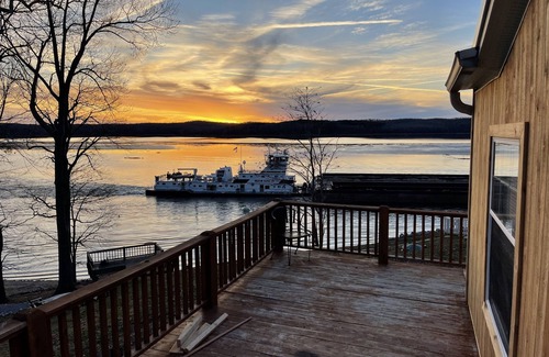 this is new to the market Available to rent for the first time. This Lake front property is awesome. Recently renovated manufactured cabin, over 1,200 sq. ft. This warm and welcoming abode offers a quiet location, a deck with a grill. This home has 3 bedrooms, 2 baths, a large tv with Dish TV with 100’s of channels and many board games. It has a well-equipped kitchen. There is a large back porch to sit and watch the boating world go by. Many kinds of boats are available for rent at the Lake Barkley Marina only minutes away. The house includes a covered dock with great swimming and fishing (Kentucky Fishing License required). There is a fire pit located by the dock.