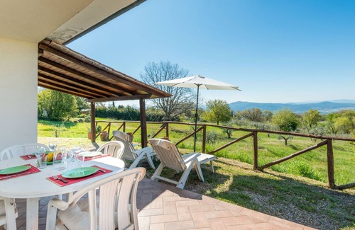 3-room house 60 m2 on 2 levels Bright, cosy furnishings: 1 double bedroom. Kitchen-/living room (oven, dishwasher, Gas stove, 4 gas rings, freezer, electric coffee machine) with dining table, wood-burning stove. Exit to the terrace. Shower/bidet/WC. Upper floor: 1 room with 1 bed, 1 sofabed and satellite TV. Exit to the balcony. Wood heating. Heating not available in all rooms. Small balcony, terrace partly. Terrace furniture, barbecue, deck chairs. Marvellous panoramic view of the countryside. Facilities: washing machine. Internet (WiFi, free). Please note: non-smokers only. Maximum 2 pets/ dogs allowed. it053021c2d5zblqe6