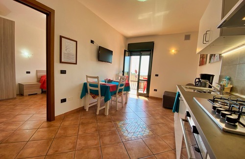 The apartment is located on the first floor facing the street, suitable for a maximum of 3 people and consists of a living room with kitchenette and sofa bed for 1 person, balcony with lake view with table and chairs, bedroom with double bed for 2 people . Room facilities: Safety Deposit Box, Shower, Seating Area, Heating, Sofa Bed, Tiled / Marble floor, Toilet, Bathroom, Hairdryer, LED TV-SAT HDMI-USB IN FLAT 32, American Coffee Maker, Corner cooking facilities, refrigerator, dining area, electric kettle, kitchen utensils, balcony, lake view, free WiFi, air conditioning..