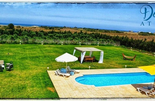 this accommodation allows you to lose track of time and space, completely disconnected and peace of mind; you enjoy the sun by the pool and 2,000 m² lawn with family or friends Dar Atef allows you to appreciate the true nature, a pristine beach, a crystal-clear sea 200m from the villa.
