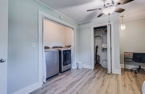 the third bedroom is versatile and can be used as a cozy sleeping area or a functional office catering to your needs The home also includes a washer and dryer, adding to the convenience of your stay.