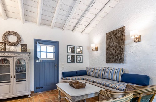 each accommodation unit includes an outdoor terrace overlooking the olive tree garden, a cozy indoor seating area with a fireplace and a flat-screen tv, an open kitchen with a dining area, 2 private bathrooms and laundry facilities